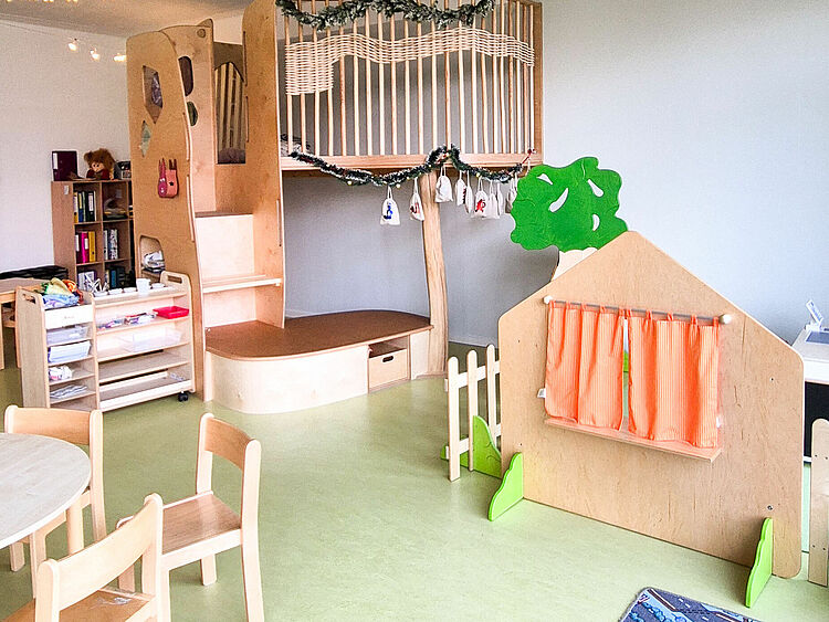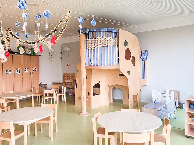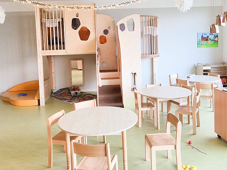 In drei Krippengruppen werden Kinder ab dem vollendeten ersten Lebensjahr betreut. Geschlossene Gruppenstrukturen bieten den Kleinsten Orientierung, während ausgewählte gruppenübergreifende Aktivitäten zusätzliche Impulse ermöglichen. Wir legen besonderen Wert auf eine sanfte Eingewöhnung, feinfühlige Beziehungen und eine anregende Umgebung, die den kindlichen Entdeckerdrang unterstützt.