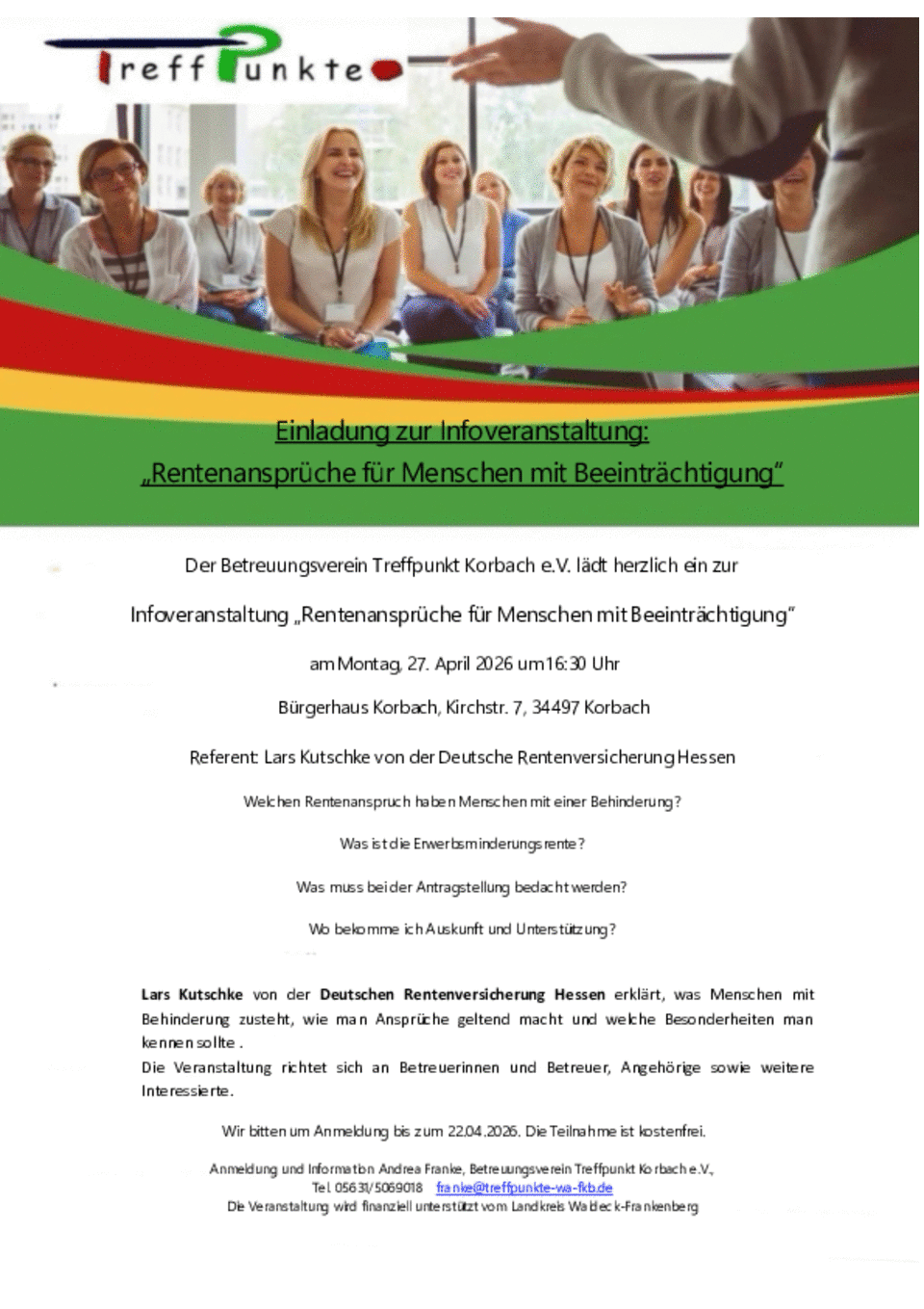 Anmeldung und Information Andrea Franke, Betreuungsverein Treffpunkt Korbach e.V.,