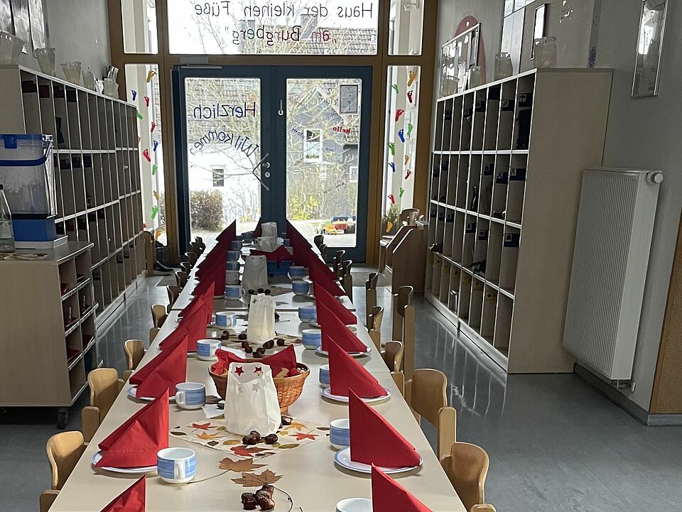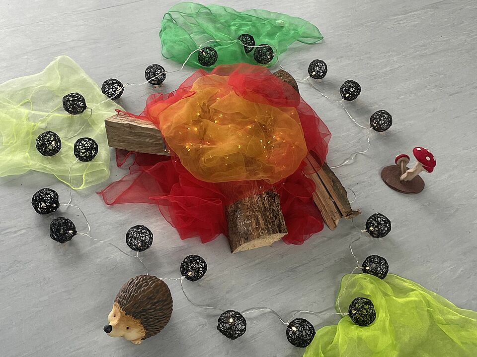 Am 11. November 2025 um 15 Uhr trafen wir uns in der festlich geschmückten Turnhalle, um gemeinsam Laternenlieder zu singen. Anschließend lauschten die Kinder gespannt der Kamishibai-Geschichte von Sankt Martin, einem japanischen Erzähltheater mit Bildkarten.