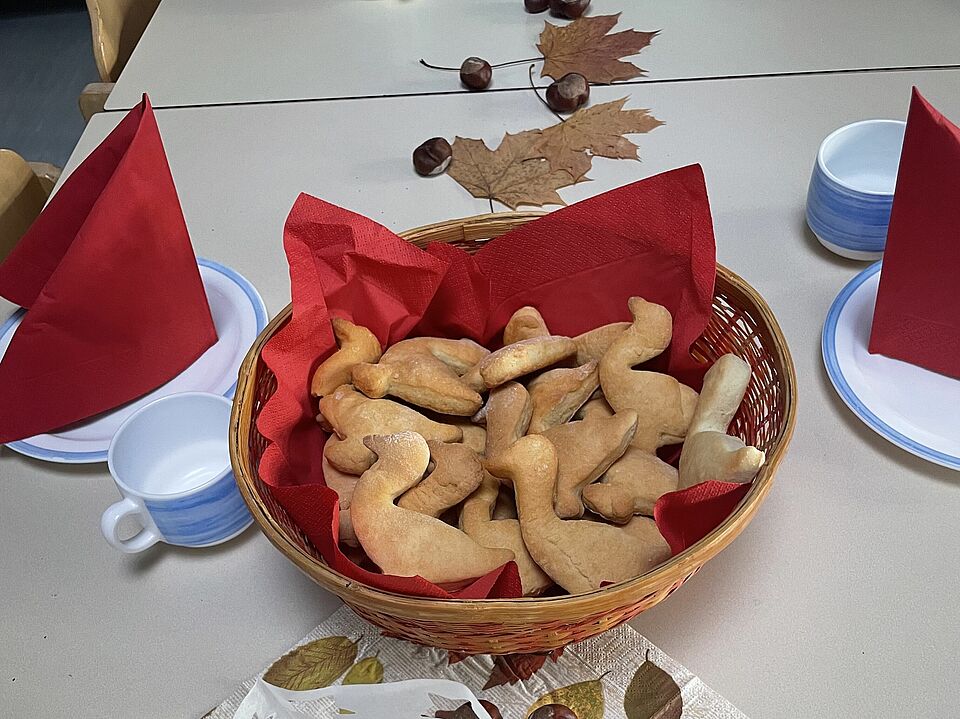 Danach stärkten wir uns mit „Martinsgänsen“ – selbstgebackenen Plätzchen, die jedes Kind am Vormittag selbst ausgestochen und gebacken hatte. Dazu gab es leckeren Kinderpunsch.