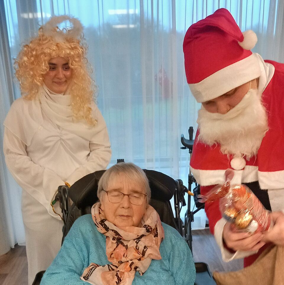Am Donnerstag staunten die Bewohnerinnen und Bewohner des DRK-Seniorenzentrums in Frankenberg nicht schlecht: dort war der Nikolaus dieses Jahr besonders früh unterwegs! Um so größer war die Überraschung und Freude. Gemeinsam mit seinem himmlischen Helfer verteilte er Geschenke und Weihnachtsstimmung im Haus.
