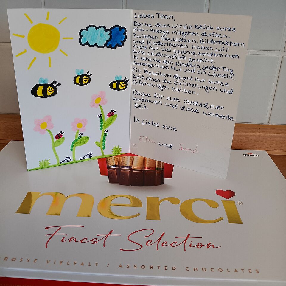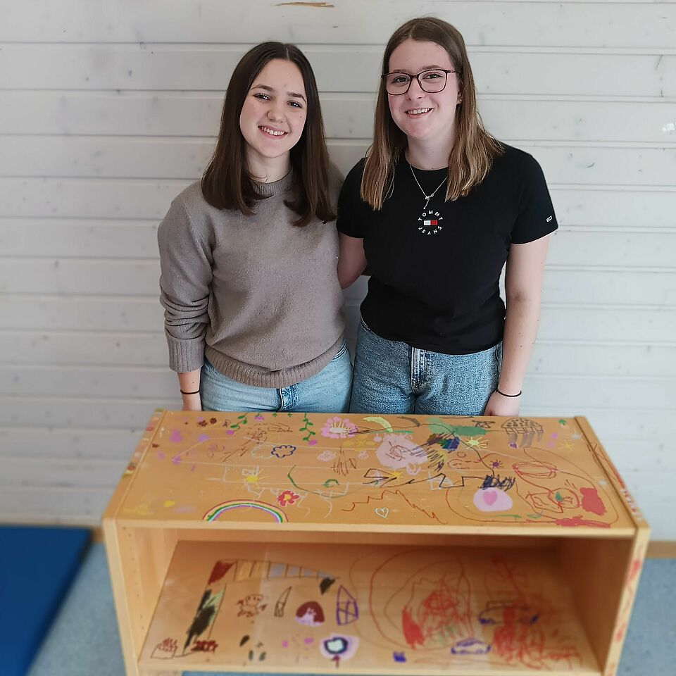 Zum Abschluss wurde gemeinsam mit den Kindern ein Regal bunt gestaltet – ein bleibendes Andenken an die Zeit im „Wolkenland“. Auch das Team erhielt ein kleines Geschenk und eine persönliche Karte, die für viel Freude sorgte.