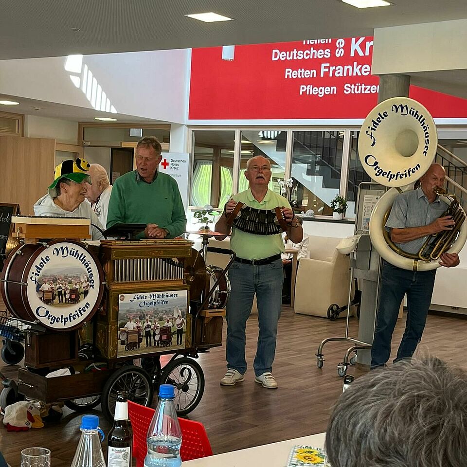 Am 11. September 2025 fand im DRK-Seniorenzentrum Frankenberg ein fröhliches Sommerfest statt. Zum Mittag wurden Grillwürstchen, Steaks und verschiedene Salate serviert. Am Nachmittag sorgten die „Mühlhäuser Orgelpfeiffen“ mit ihrer Musik für beste Unterhaltung bei Kaffee und Kuchen. Die DRK-Seniorengymnastik-Gruppe präsentierte mit Freude und Schwung mehrere Sitztänze, die bei den Gästen sehr gut ankamen.