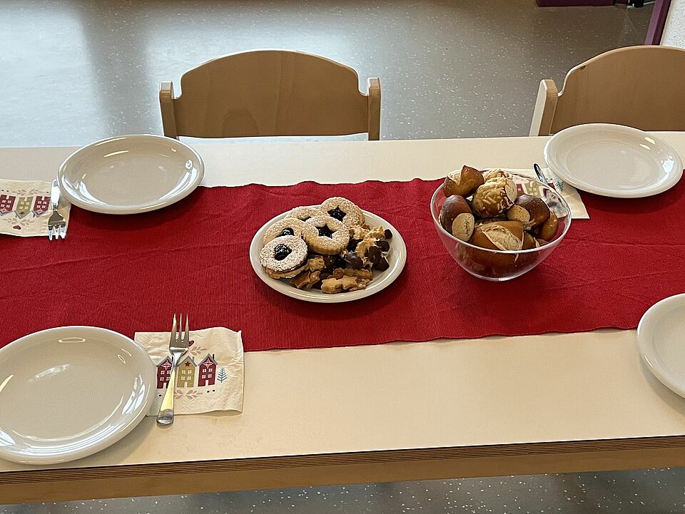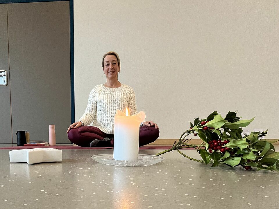 Simone Becker leitete eine Yogastunde für die Eltern zum Thema „Innere Kraft“, während Lisa und Marion die Kinder betreuten. Das Gartencenter Meckelburg schenkte jedem Elternteil einen Weihnachtsstern „Sky Star“. Für die Kinder sorgte der Ederkaufmarkt Scharf mit gefüllten Nikolausbeuteln für vorweihnachtliche Freude. Ein großes Blech Weihnachtsgebäck steuerte die Bäckerei Dirk Weber bei.